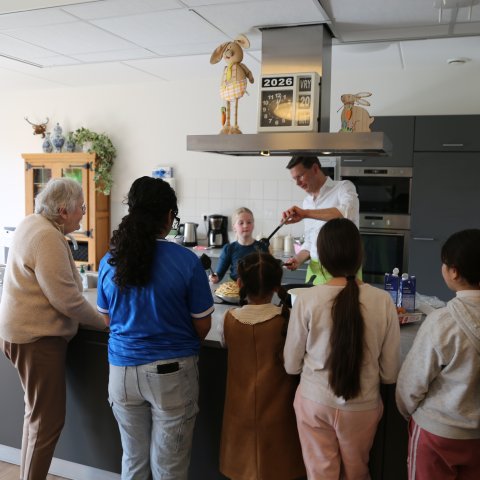 Het samenzijn tussen jong en oud zorgde daarmee voor een stapel heerlijke pannenkoeken en een prettige, huiselijke sfeer in het woonzorgcentrum.